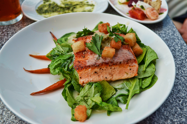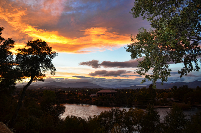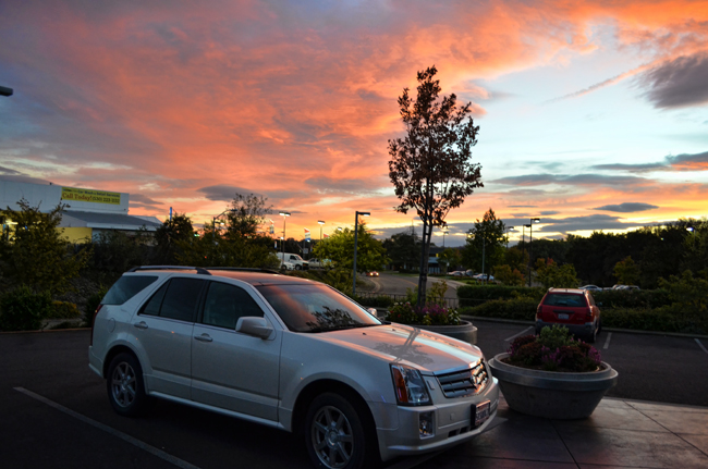 Salmon pink skies as garnish, from yesterday evening. No visit to Redding is complete without a meal or a drink on their patio. View 202.